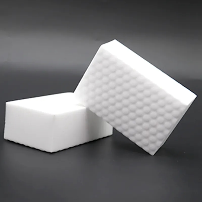 The main component of melamine sponge is melamine resin foam. Its biggest feature is its super decontamination ability. It does not need any chemical cleaner, bu only water. Relying on the nao-capillary hole structure in the sponge, it can automatically adsorb the ageing dirt on the surface of the material during the wiping process, and easily remove the dirt. It can not only wipe the induction cooker, but also wipe the data cable,tea dirt,shoes, putty mixed stains,etc. When using it, you only neeed to soak it in water and then wipe the stains. Whave a mature production line.